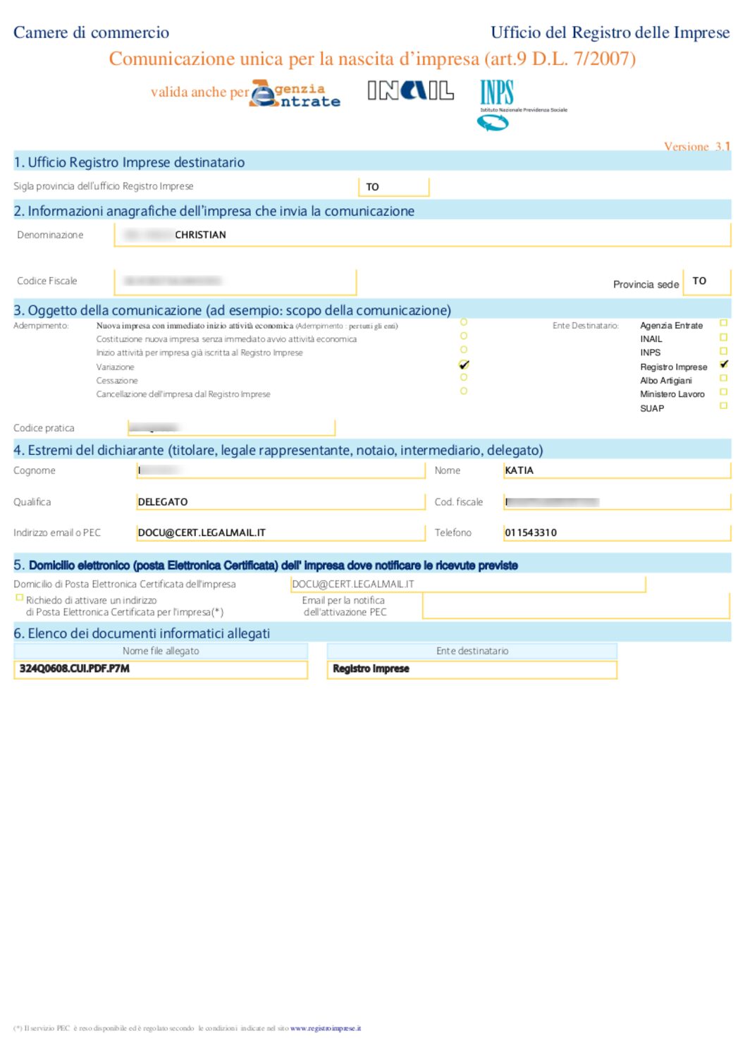 Per richiedere la predisposizione e l’invio di una pratica di Comunicazione Pec occorre compilare il form di richiesta ed effettuare il pagamento. Successivamente verrà predisposta a ns. cura la pratica di comunicazione che verrà inserita nella tua area riservata. Dovrai firmarla digitalmente (creando un file con estensione .p7m) e caricarla nell’area stessa insieme alla copia del documento di identità in modo da poterla inviare al Registro Imprese.