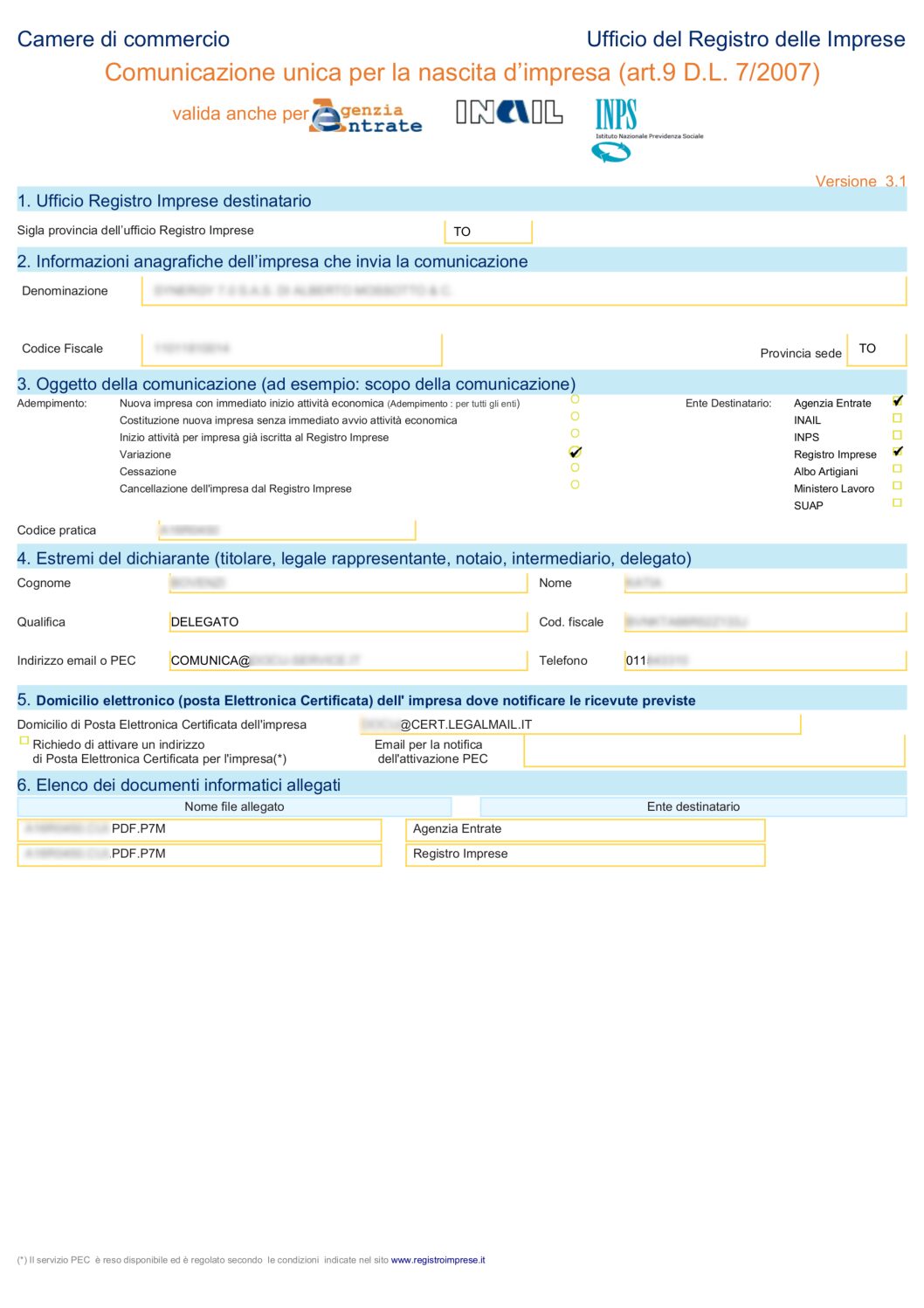 Dall’anno 2010 le comunicazioni devono essere effettuate con la piattaforma telematica ComUnica di Infocamere che consente di effettuare pratiche di iscrizione, modifica e cessazione sia alle Camere di Commercio che ad altri Enti quali Agenzia Entrate – Inps – Inail.