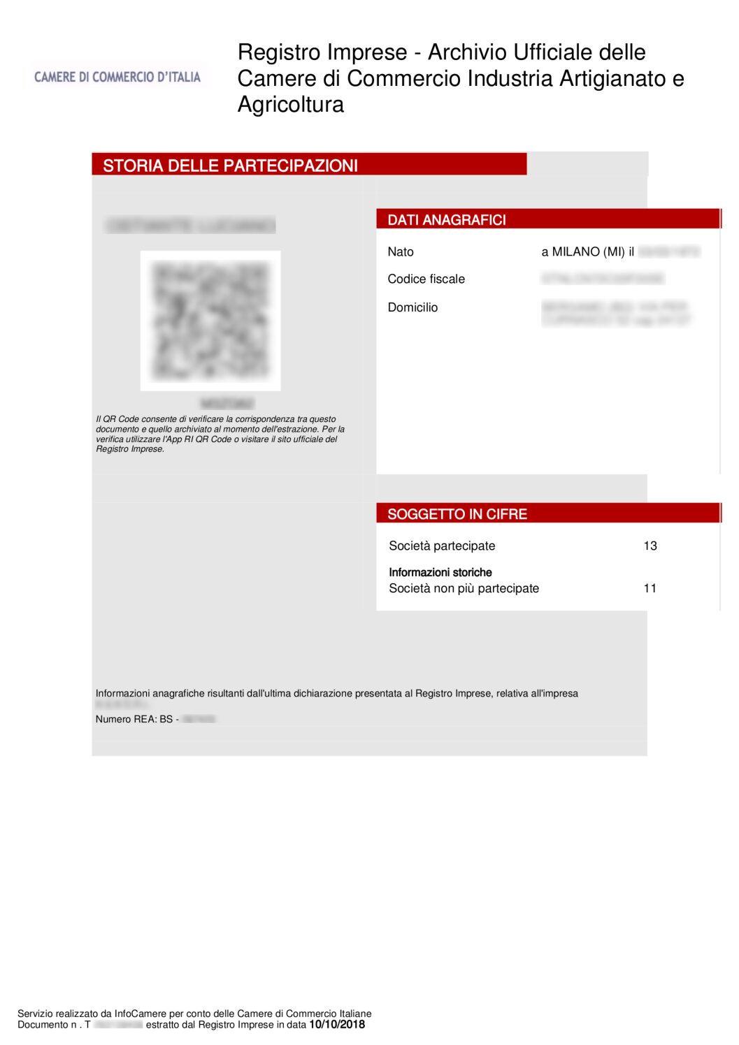 La Visura Partecipazioni Societarie può essere richiesta per le persone fisiche persone giuridiche e contiene le informazioni anagrafiche del soggetto, i dati delle società di cui il soggetto detiene quote o azioni e l’entità di tali quote.
