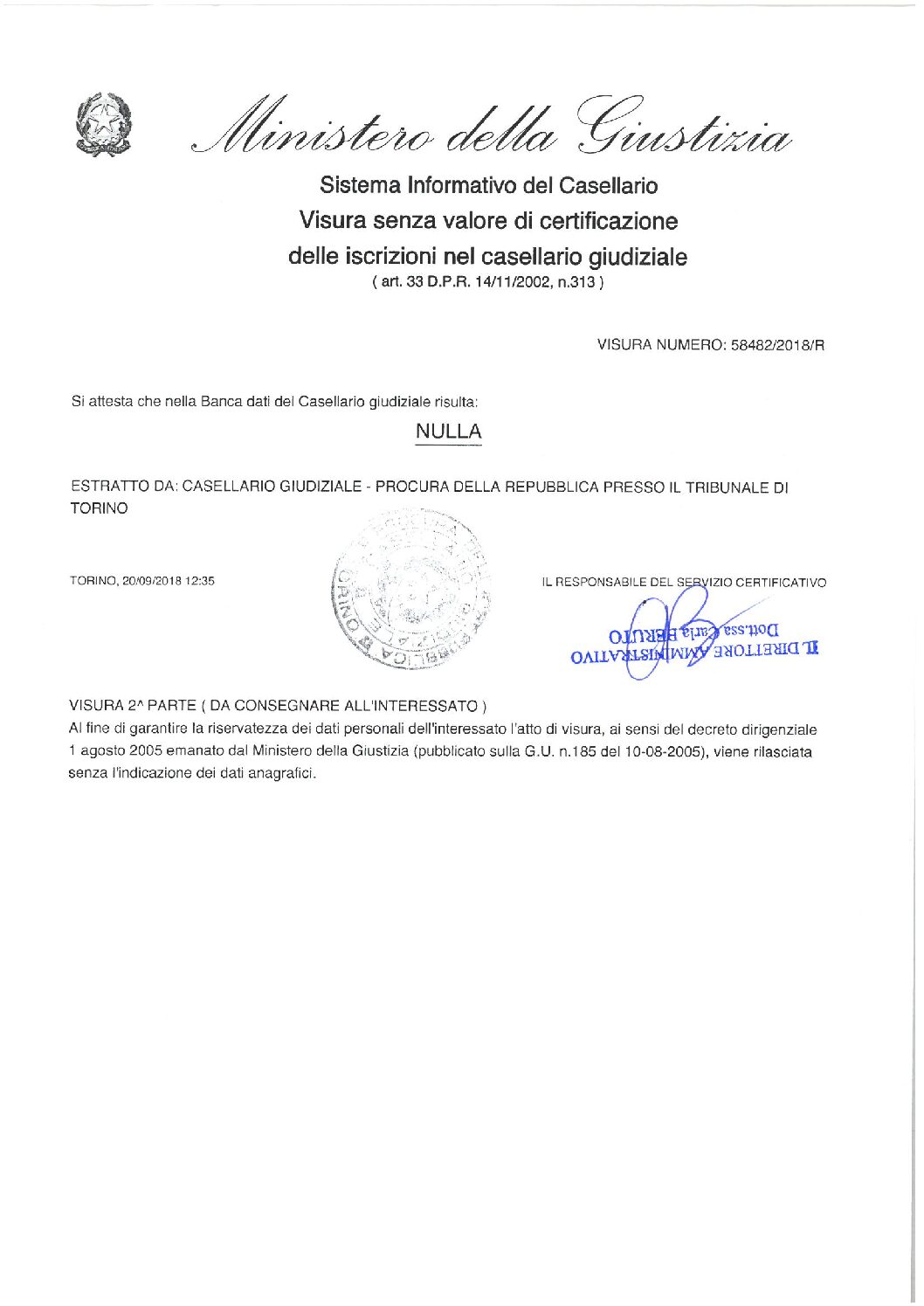 Il certificato può essere richiesto su tutte le Procure nazionali in forma urgente e non urgente e ha validità 6 mesi.